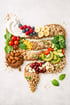 Ein ausgewogener Speiseplan mit viel Gemüse, Obst, Vollkornprodukten, Hülsenfrüchten, Nüssen und gesunden Fetten